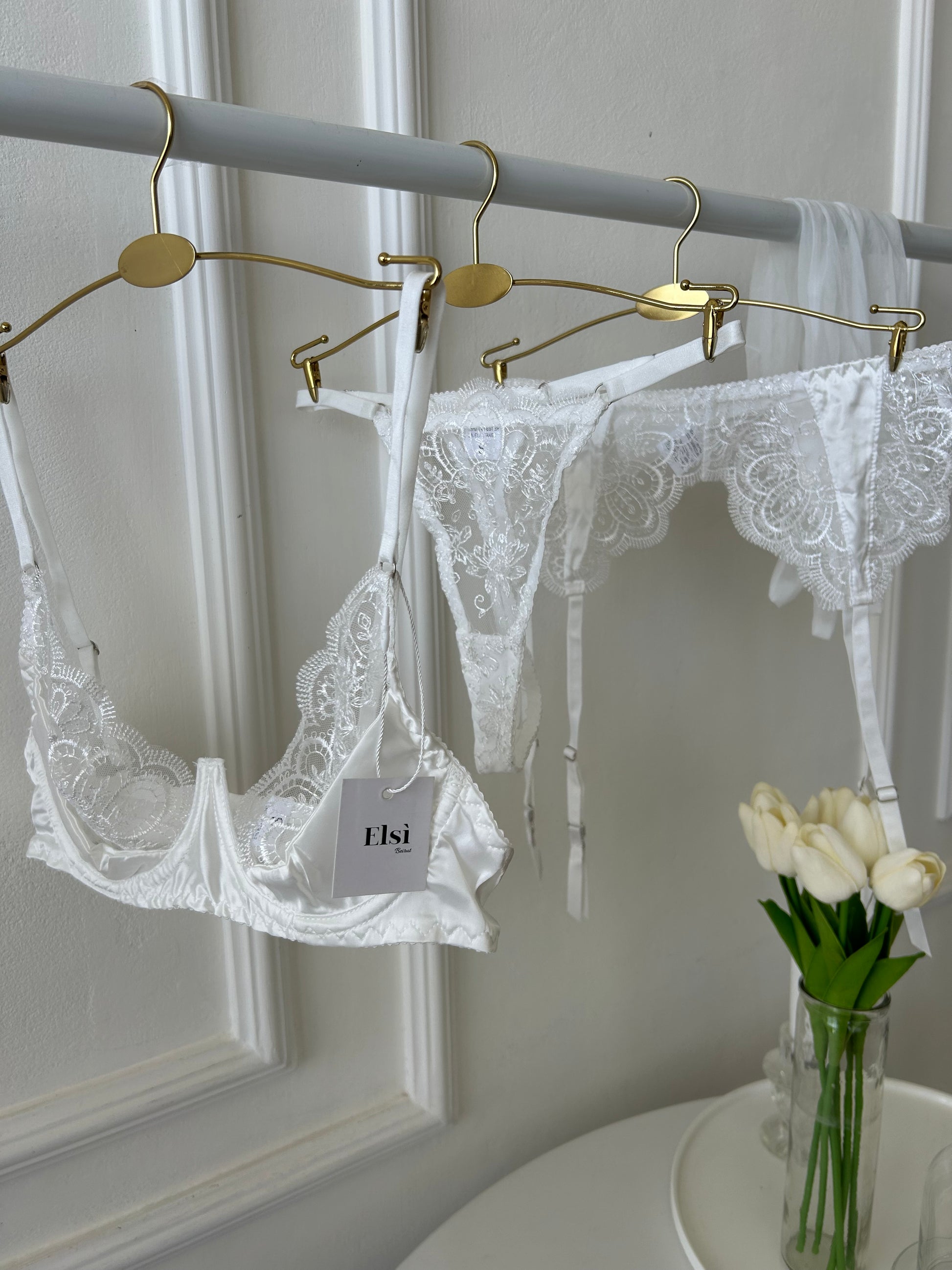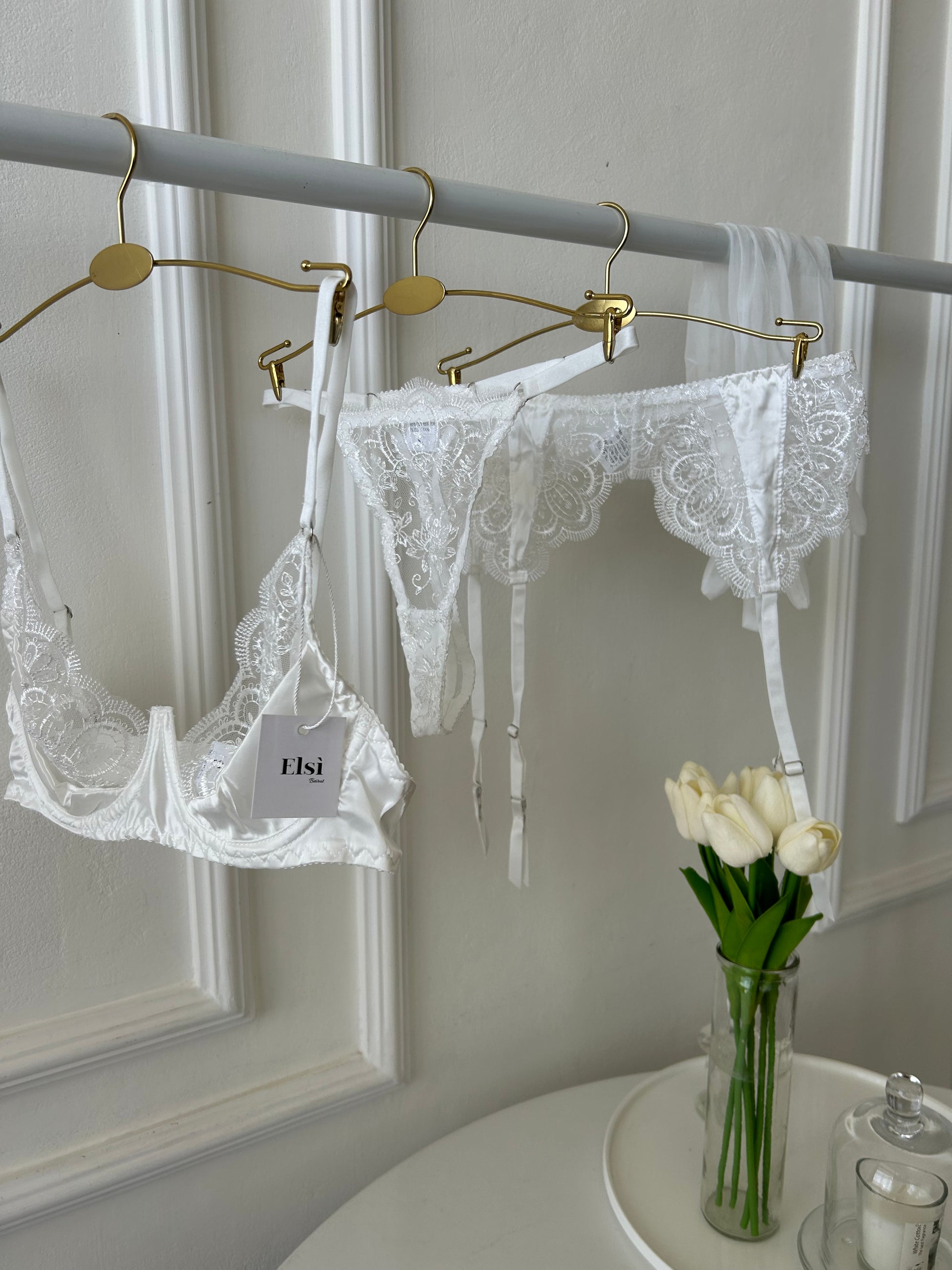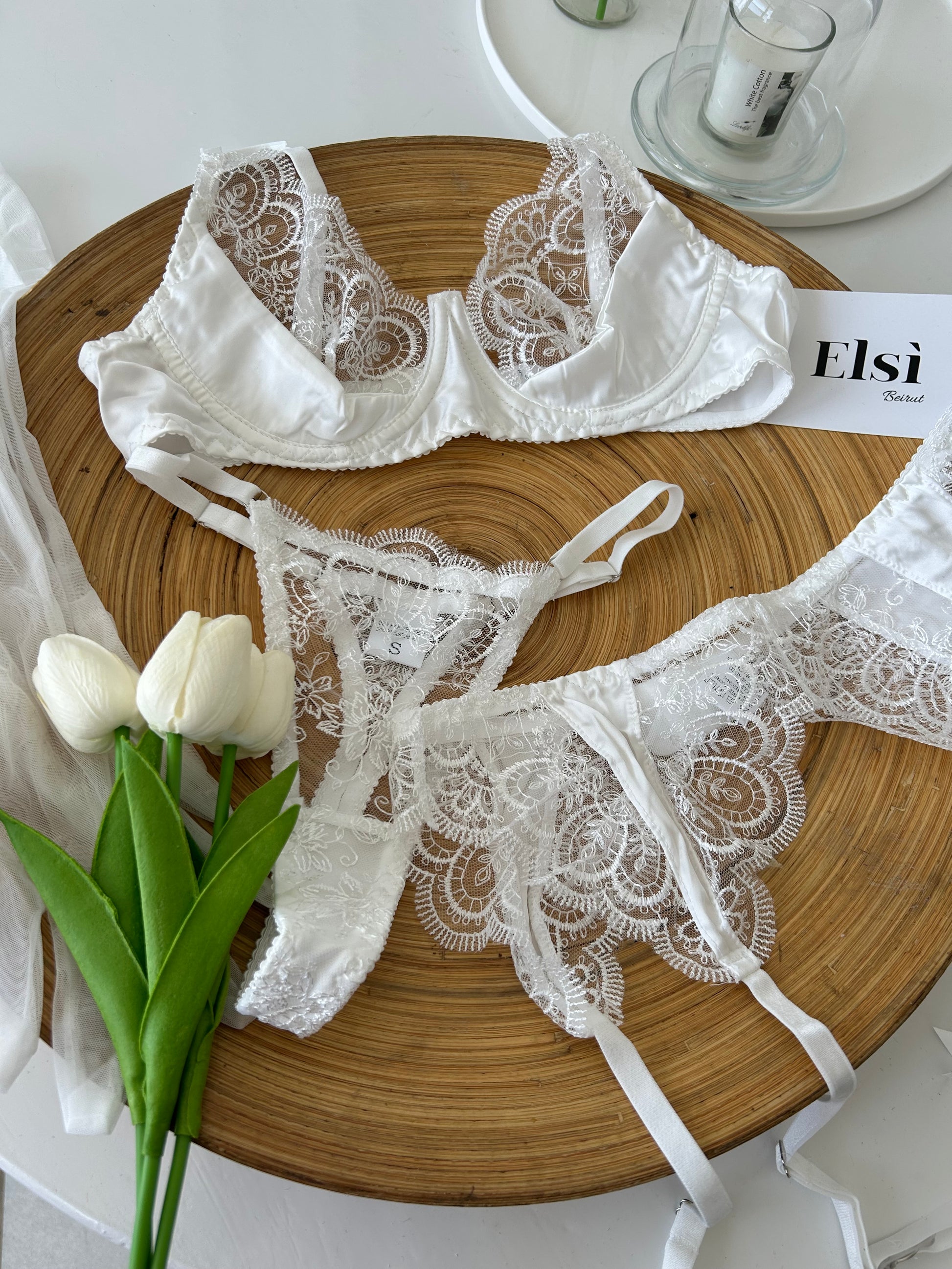 Bra+ garter belt + string + gloves